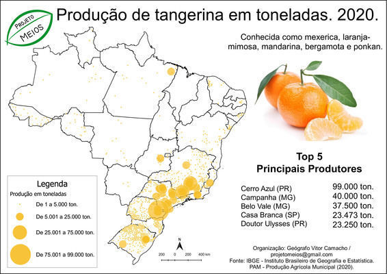 O Projeto Meios realizou o mapeamento do fruto utilizando dados da Produção Agrícola Municipal de 2020, do IBGE. No mapa é possível observar destaque para a região do Vale do Ribeira, o clima e a geografia do Vale deram favorecem a produção, resultando em sabor e qualidade únicos para o fruto, outra região de destaque é o Sul de Minas de Gerais que também possui caraterísticas geográficas propícias para o plantio, com presença de vales e montanhas.