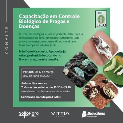 O controle biológico é um importante fator para a consolidação de uma agricultura sustentável e a adesão nas lavouras do país tem crescido rapidamente. Com intuito de balizar o conhecimento do mercado, o Grupo Vittia, dedicado à produção de insumos de alta tecnologia para a agricultura moderna, por meio da Biovalens, lançou um curso de EAD, ensino a distância, para capacitação em controle biológico de pragas e doenças, em parceria com a SolloAgro, programa de educação continuada do Departamento de Ciência do Solo da ESALQ /USP (Piracicaba).