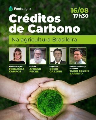 Ocorre no dia 16 de agosto próximo (terça-feira), a partir das 17h30, com transmissão pelo YouTube, o painel Créditos de Carbono na Agricultura Brasileira. O encontro, gratuito, tem inscrições abertas e reunirá os pesquisadores Afonso Peche, Decio Gazzoni e Tiago Egydio Barreto. O objetivo do evento é trazer à luz desdobramentos relevantes do novo mercado de carbono que se desenha no Brasil, entre estes a habilitação de agricultores, o posicionamento das empresas e as oportunidades de negócios na área.