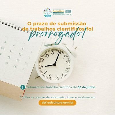 A SBFruti prorrogou o prazo de submissão de trabalhos em 1 mês para você unir ciência, debates e inovação a sua experiência neste evento que junta especialistas, profissionais e estudantes!