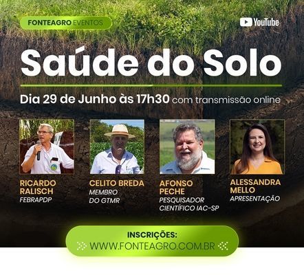 Ocorre no próximo dia 29, o painel Saúde do Solo Brasileiro, com transmissão pelo YouTube. Com apoio do Instituto Ânima de Educação, e da consultoria de informações para o agronegócio Spark Inteligência Estratégica, o encontro reúne os pesquisadores Afonso Peche, Celito Eduardo Breda e Ricardo Ralisch. Os três debatedores, reconhecidos entre os principais profissionais do País na área de solo, tratarão do manejo agronômico e sustentável de lavouras, com ênfase na conservação e preservação ambiental.