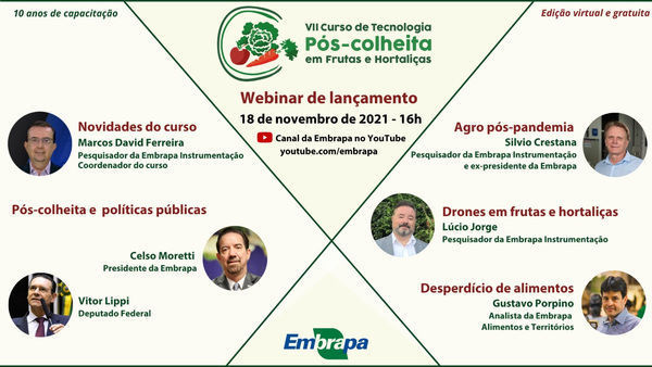 O webinar terá a participação do presidente da Embrapa, Celso Moretti, e do deputado federal Vitor Lippi (autor da emenda parlamentar que possibilitou tornar o curso virtual e gratuito), abordando as políticas públicas no tema e como a Empresa poderá ajudar produtores, consumidores e toda a cadeia a diminuir as perdas e o desperdício, com base na ciência.