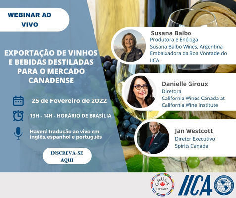O evento faz parte das atividades da Representação do IICA no Canadá, muitas destinadas a promover o intercâmbio comercial do país com nações da América Latina e do Caribe - Vinicultores da América Latina poderão conhecer experiências, desafios e boas práticas diretamente de peritos, visando que suas bebidas cheguem a mais consumidores no frutífero mercado canadense.
