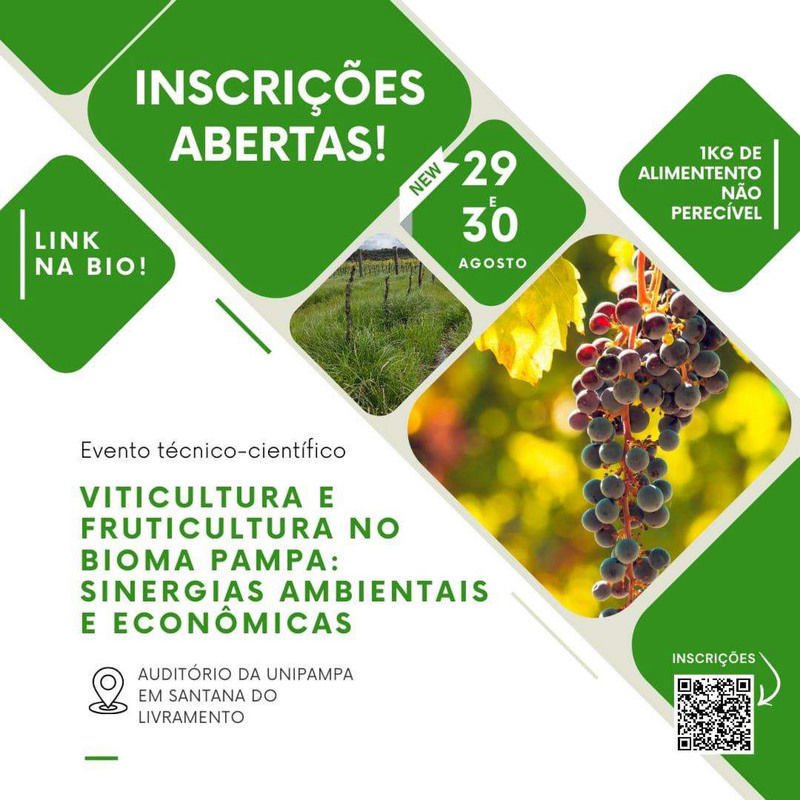 Datas do evento: 29/8 e 30/8/2024 - Local: Auditório da Unipampa, R. Barão do Triunfo, 1048 - Centro, Santana do Livramento - RS, 97573-634, Brasil. - Público-alvo: comunidades universitárias, produtores e técnicos.
