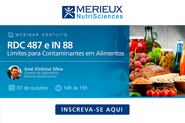 Convidamos você para participar, no próximo dia 07 de outubro, às 14h, do webinar RDC 487 e IN 88: Limites de Contaminantes em Alimentos com José Vinícius Silva, PhD, gerente de laboratório. Participe! As vagas são limitadas.