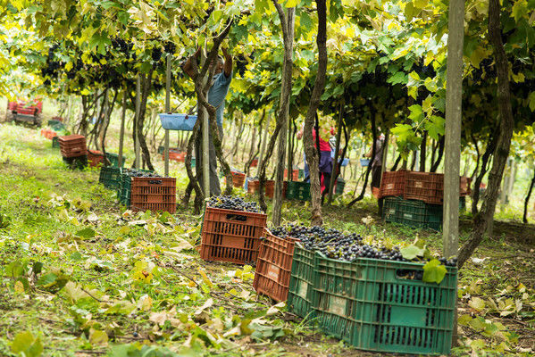 - De acordo com Mateus Poggere, diretor industrial da fábrica, nesta colheita estão as uvas de mesa, uvas finas e híbridas. "As espécies de maior relevância são a Bordô e Isabel, Moscato Branco, Chardonnay e Niágara Branca, que dão origem aos nossos vinhos, sucos e espumantes", comenta.