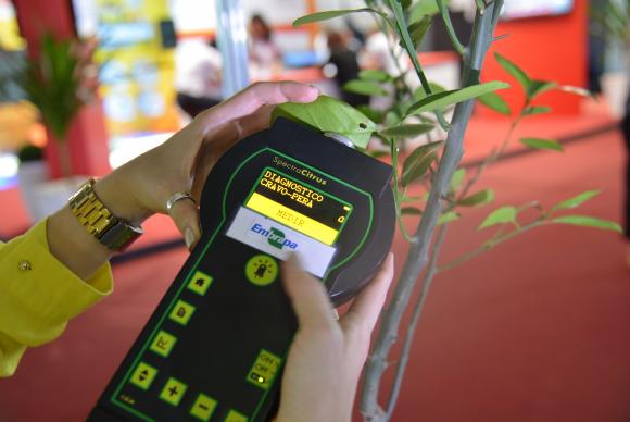 A Empresa Brasileira de Pesquisa Agropecuária (Embrapa) desenvolveu o protótipo de um equipamento capaz de diagnosticar de forma rápida uma doença comum em plantações de laranja, conhecida como HLB ou greening, a mais destrutiva nos pomares brasileiros. A grande vantagem da técnica é identificar as plantas doentes antes que os sintomas apareçam. O HLB é uma doença sem cura causada por bactéria, com potencial de acabar com toda a plantação. Quanto antes o diagnóstico for feito, melhor.