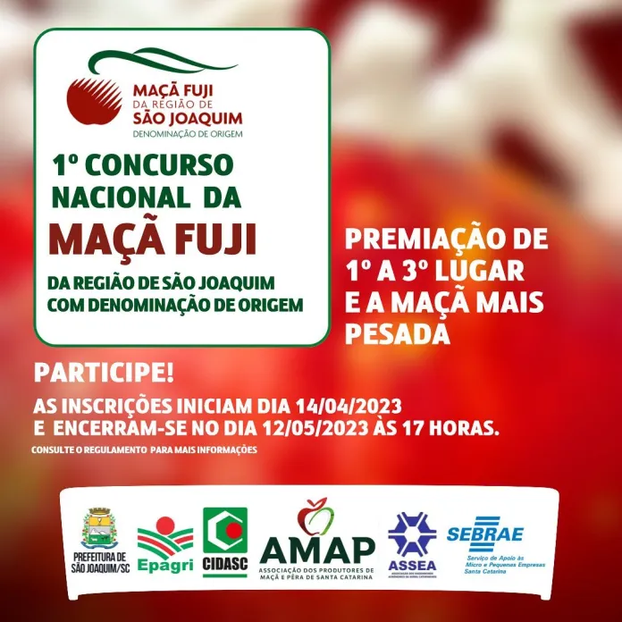 O evento é aberto a todos os fruticultores da área de abrangência da Indicação Geográfica da Maçã Fuji da Região de São Joaquim e organizado por diversas entidades como PREFEITURA DE SÃO JOAQUIM SC, AMAP, SEBRAE, EPAGRI, CIDASC, ASSEA.