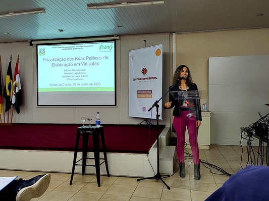 A chefe da Divisão de Inspeção de Produtos de Origem Vegetal da Seapi, Fabíola Boscaini Lopes, abriu o evento, que teve palestra ministrada pelos fiscais estaduais agropecuários Nadhine Nostrani Cabral, Márcio Alburquerque, Altemar Magnabosco e Plinio Manosso do Departamento de Defesa Vegetal e do Laboratório de Referência Enológica Evanir da Silva (Laren) da Secretaria.