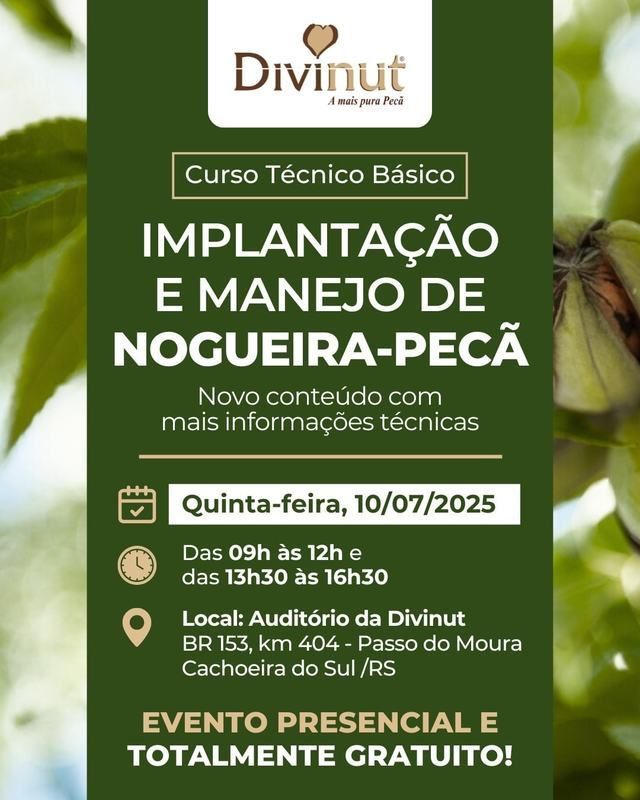 Curso Técnico de noz-pecã da Divinut em julho - Diversifique sua propriedade!