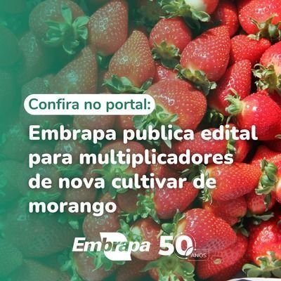 A Embrapa publicou, no dia 22 de junho, edital de oferta pública para produtores e laboratórios interessados ??na multiplicação da nova cultivar de morangueiro BRS DC25 (Fênix). O envio das informações e documentos exigidos no edital deve ser feito por e-mail, no período entre 3 e 21 de julho.