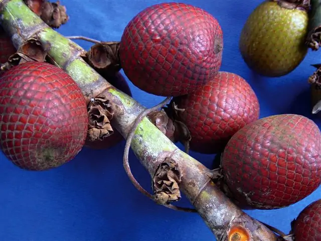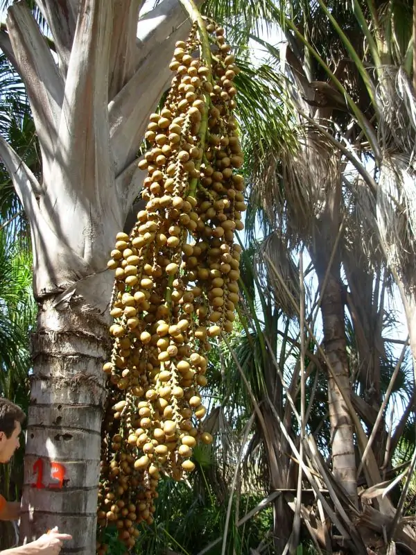 O Buriti (Mauritia flexuosa) é uma palmeira dioica, podendo atingir 15 m de altura e 6 m de diâmetro de copa, com até 30 folhas grandes. A maturação dos frutos ocorre entre dezembro e maio, com produção bianual nas plantas femininas.