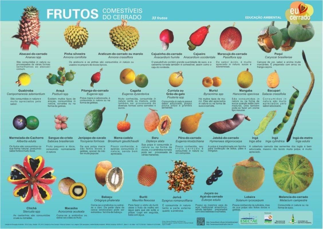 A região apresenta grande riqueza em espécies (mais de 12 mil espécies vasculares), representando aproximadamente 30% da biodiversidade brasileira e 5% da mundial. Várias espécies vegetais do Cerrado destacam-se por apresentarem valor alimentício, sendo utilizadas pelas comunidades locais, para ecoturismo, para o consumo in natura, para a produção de sucos, doces, cachaças, sorvetes, vinhos, licores, geléias, vinagres, molhos, óleos, batidas, tortas, conservas, passas, vitaminas, mingaus, bolos, pães, biscoitos, bolachas, roscas e como ingredientes na confecção de pratos típicos, representam, portanto, potencial de exploração sustentada para muitas famílias da região, podendo ser utilizadas inclusive na merenda escolar. Nesse contexto, ocupam lugar de destaque, pois apresentam sabores marcantes e peculiares, com elevados teores de açúcares, vitaminas, proteínas, sais minerais, fibras, ácidos graxos, propriedades antioxidante, entre outros.