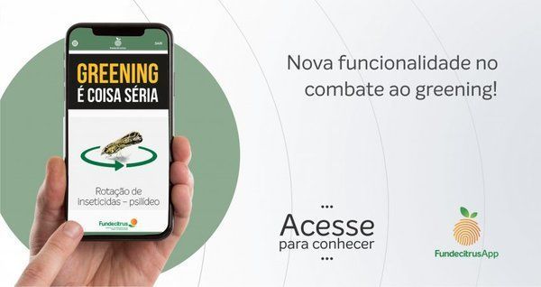 Lançado em fevereiro deste ano, o Fundecitrus App agora ganha uma nova funcionalidade para auxiliar o citricultor a rotacionar adequadamente os inseticidas para controlar o psilídeo, inseto vetor do greening. O novo recurso 'Rotação de inseticidas para psilídeo' ajuda o produtor a escolher os inseticidas com modos de ação diferentes para utilizar na propriedade, indicando, assim, a importância da rotação adequada de produtos para evitar a seleção de psilídeos resistentes.