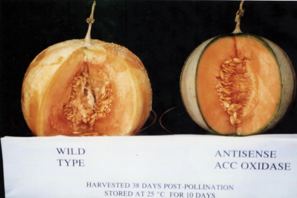 Esta característica peculiar da espécie do melão em possuir diferentes tipos de maturação o torna uma fruta modelo para estudos de comportamento de desenvolvimento e amadurecimento a níveis que vão desde o campo e seus gargalos de produção até a compreensão molecular dos processos envolvidos. Com isto, os olhos do Prof. Dr. Ricardo Antonio Ayub se voltaram às brilhantes descobertas deste universo. Em 1996, na conceituada revista Nature, o professor Ricardo publicou em parceria com outros pesquisadores internacionais sobre o desenvolvimento do primeiro melão "longa vida", um tipo Cantalupensis transformado geneticamente para bloquear a síntese de etileno, hormônio responsável pela maturação em frutos climatéricos, e então foram observadas as características dependentes e não dependentes deste hormônio. Observou-se na ocasião que na ausência de etileno, os frutos sofriam retardo da mudança de cor da casca, porém com coloração normal de polpa, não havia abscisão da planta mãe, mantinham-se doces, porém com aroma bem menos pronunciado.