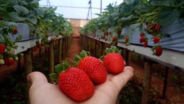 Semi-hidroponia - Raul Maria Cássia, da Emater-MG em Pouso Alegre, chama atenção para outra tendência de mudança na produção do morango: "Devido à escassez crescente de mão de obra e à necessidade de melhorar as condições ergonômicas para os trabalhadores nas lavouras, a introdução de novas tecnologias, como o sistema semi-hidropônico, está se acelerando. Embora o custo de produção seja mais alto do que o sistema convencional no solo, variando de 9 a 25 reais por muda, a produção esperada, que é de duas caixas por planta, compensa o investimento", afirma o coordenador regional.