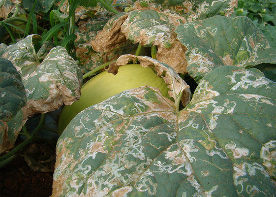 O melão é especialmente atingido pela mosca-minadora. A dificuldade de controle da praga com inseticidas sintéticos e as exigências dos países importadores de melão por frutos livres de resíduos agroquímicos fez surgir uma forte demanda por soluções biológicas para o controle do problema.