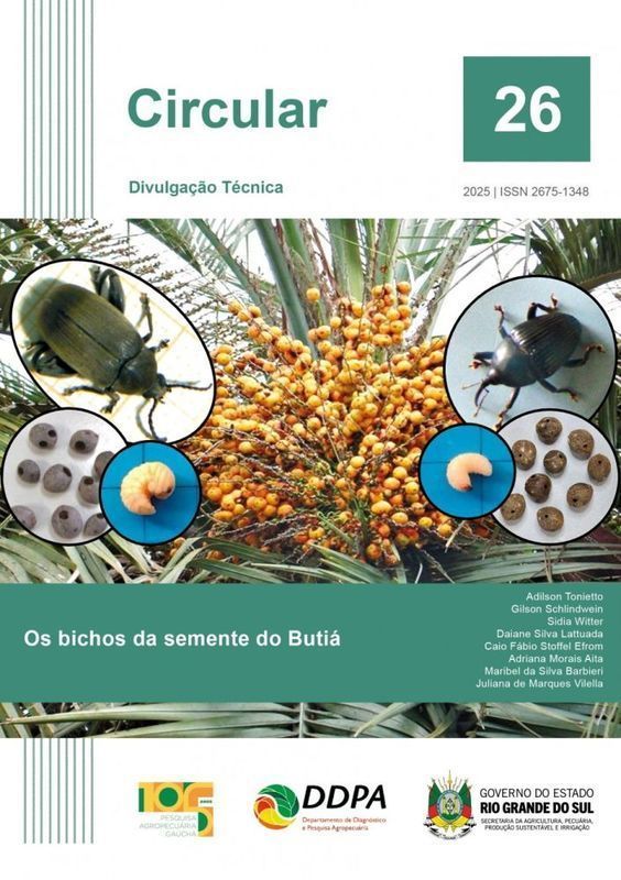 Os dados estão publicados na Circular nº 26, "Bichos da Semente do Butiá", lançada pelo Ddpa neste mês de junho. O trabalho é fruto de observações a campo, juntamente com a experimentação em laboratório, o que tornou possível a identificação dos insetos que se alimentam da semente do butiazeiro, e o conhecimento a respeito dos seus ciclos biológicos.