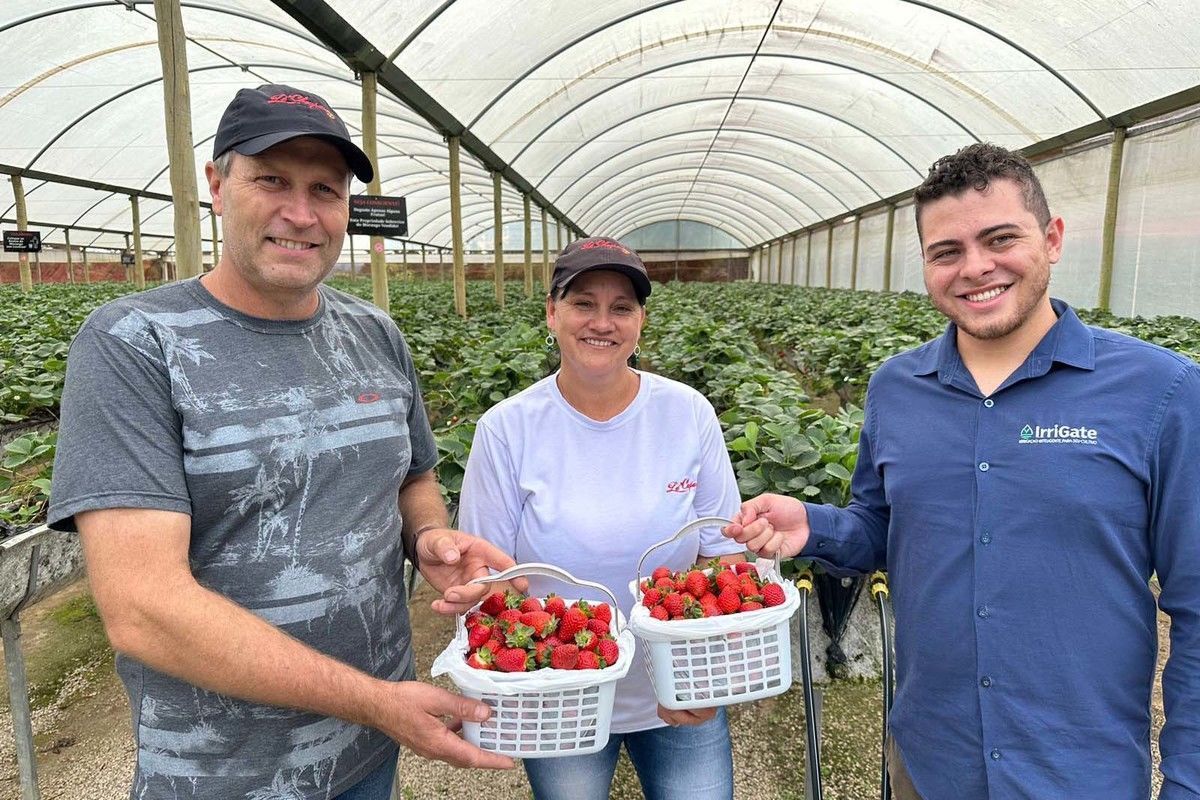 Faça chuva ou faça sol, os 20 mil pés de morango da chácara La Choupana, em São José dos Pinhais, na Região Metropolitana de Curitiba, estão sempre com a umidade do solo e substrato controlados. A irrigação e o controle da quantidade de adubo nas plantas, que antes eram feitos de forma manual pela família Leschnhak, hoje são realizados de maneira 100% autônoma graças à tecnologia e inovação da startup curitibana IrriGate.