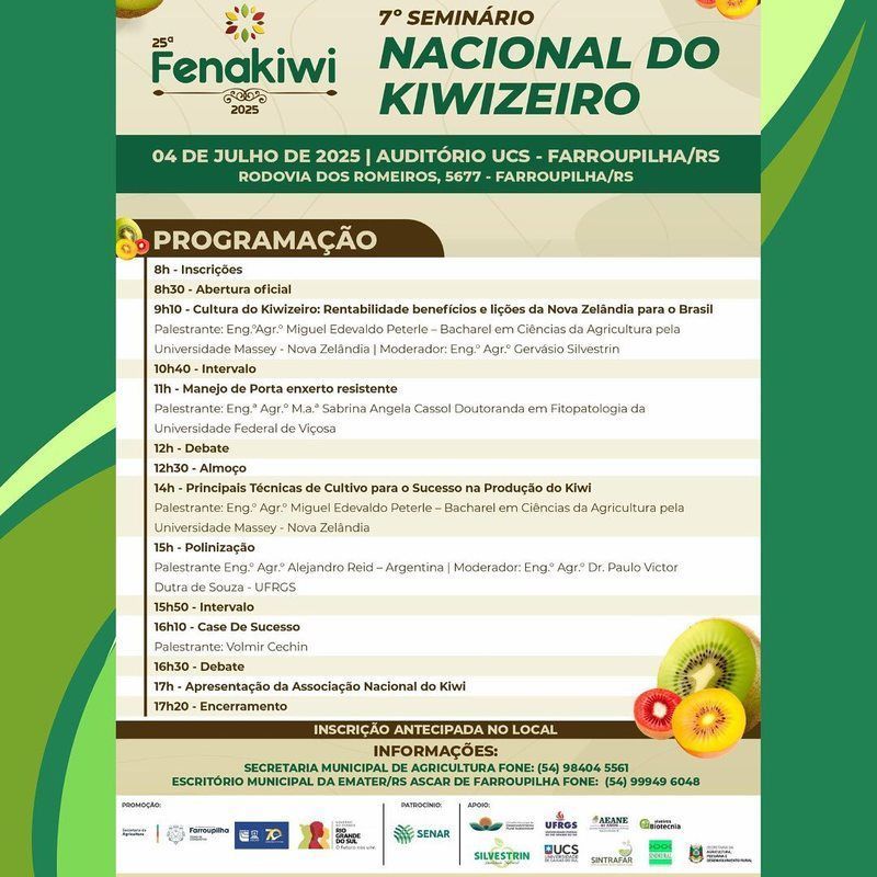Viveiros Biotecnia convida todos a participarem do 7° Seminário Nacional do Kiwizeiro, no dia 4 de julho, no Auditório da UCS, Campus de Farroupilha.