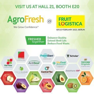 AgroFresh Solutions, Inc. (NASDAQ: AGFS) ("AgroFresh" ou a "Empresa") anunciou hoje, a sua participação na Fruit Logistica, em Berlim, de 8 a 10 de fevereiro, no pavilhão 21, estande E-20. A Fruit Logistica é uma das principais feiras internacionais que reúne especialistas da indústria hortifrutícola de 86 países diferentes. Como uma AgTech global inovadora e líder no segmento de pós-colheita de produtos frescos, a AgroFresh exibirá uma gama completa de soluções e tecnologias digitais que auxiliam a melhorar a qualidade e prolongar a vida útil de frutas e hortaliças frescas, ao mesmo tempo em que proporcionam economia de água e energia.