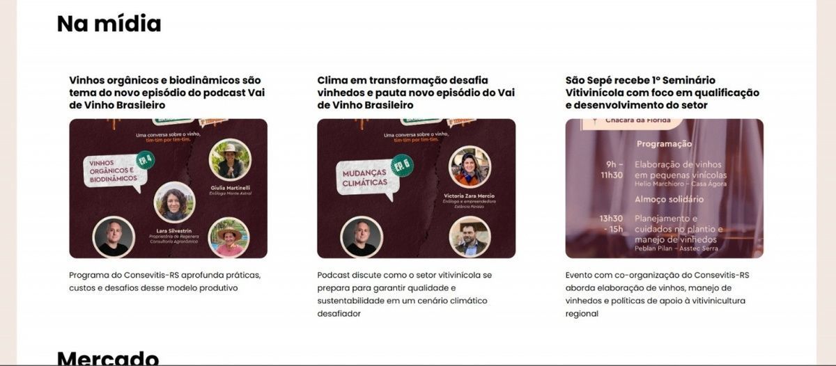 Sobre o Consevitis-RS - O Instituto de Gestão, Planejamento e Desenvolvimento da Vitivinicultura do Estado do Rio Grande do Sul (Consevitis-RS) atua no apoio, difusão e financiamento de demandas relacionadas à produção de uvas, vinhos, sucos de uva e demais produtos derivados nos âmbitos agrícola, produtivo, técnico, promocional, cultural, ambiental, jurídico e institucional. O instituto também está envolvido em programas de ensino, pesquisa, extensão e inovação, visando ao constante desenvolvimento do setor vitivinícola.