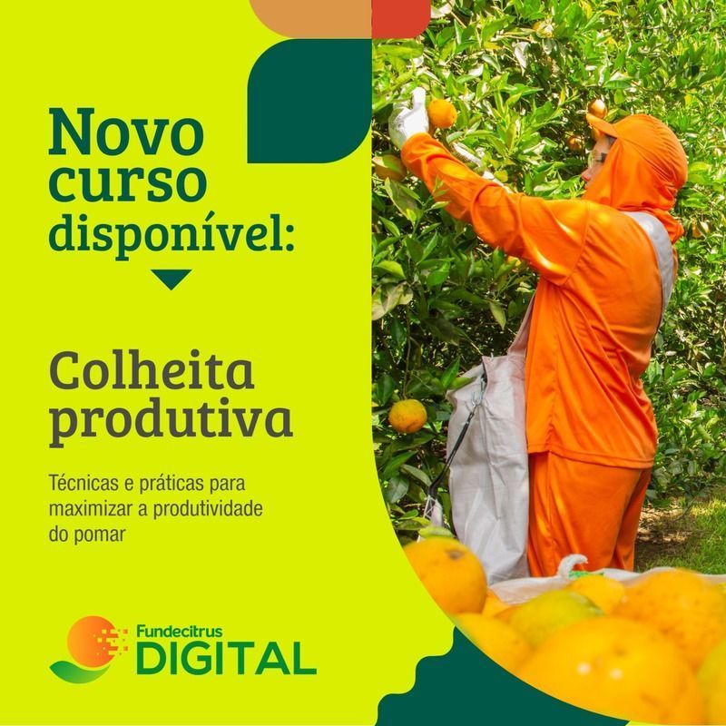 Colheita Produtiva/Aulas - Descubra como otimizar o processo de colheita de laranja com este curso do Fundecitrus. Explore os principais desafios da colheita manual, semi-mecanizada e mecanizada, conheça as configurações e ferramentas mais eficazes e aprenda sobre gestão e análise de dados.