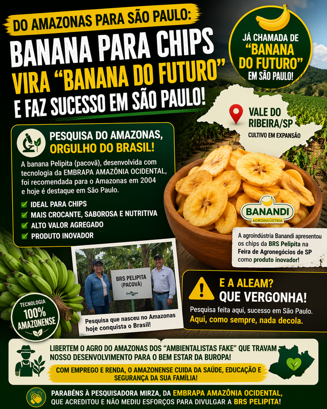 Leia também: Banana do futuro vira chips em São Paulo – reportagem da TVAlesp destaca o avanço na agroindústria que esta variedade dará à bananicultura brasileira